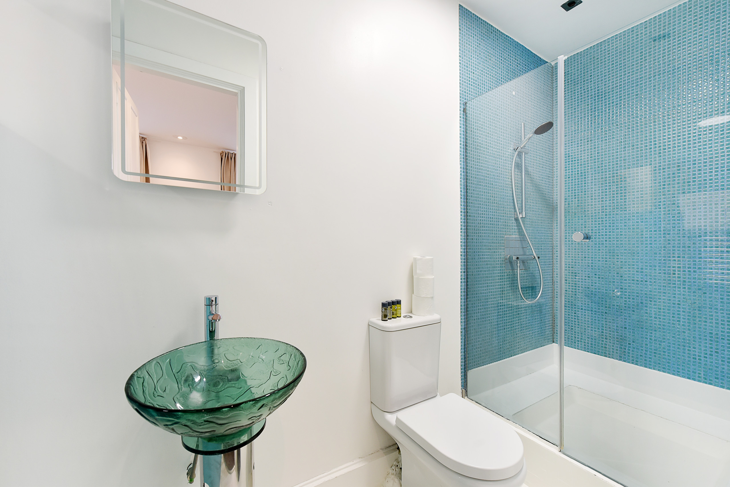 The Third Bedroom, front-facing and fully double-glazed for peace and quiet, also features a UK King-size (US Queen-size) bed, ample wardrobe space, and a stylish ensuite bathroom with rain shower.
