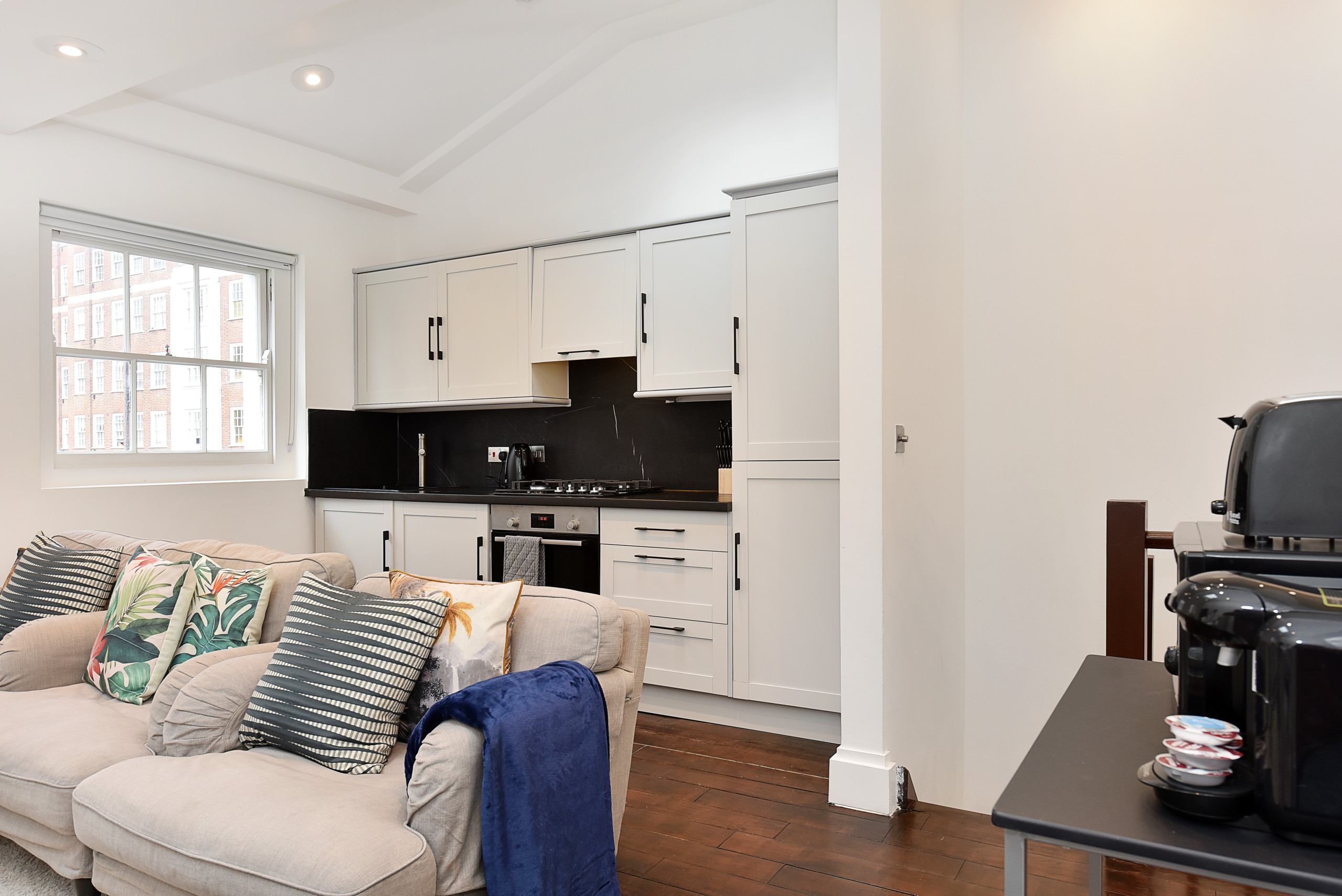 Spread across 92 sqm (990 sq ft) on the second and third floors, accessed by stairs, this beautifully presented duplex apartment has been tastefully redecorated to create a peaceful, light-filled retreat in the heart of the city.