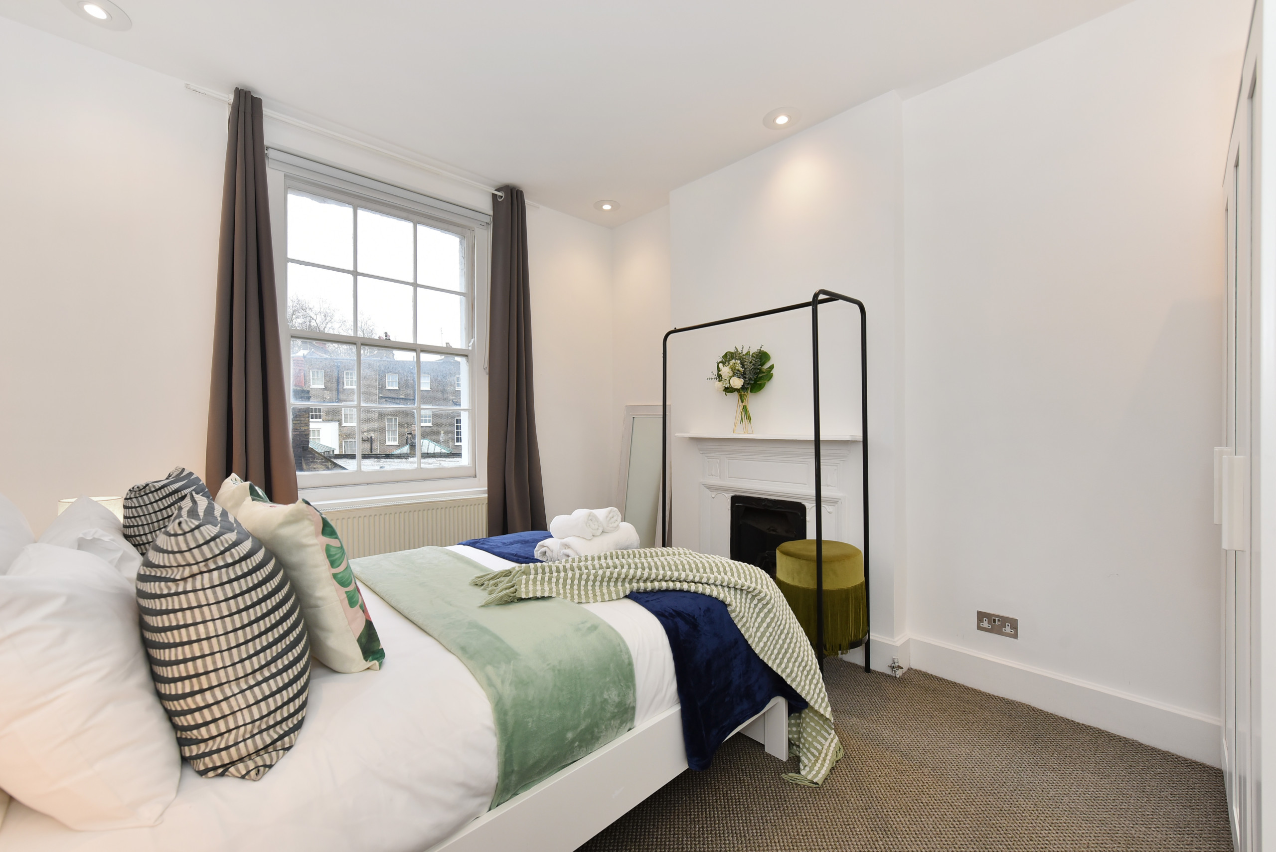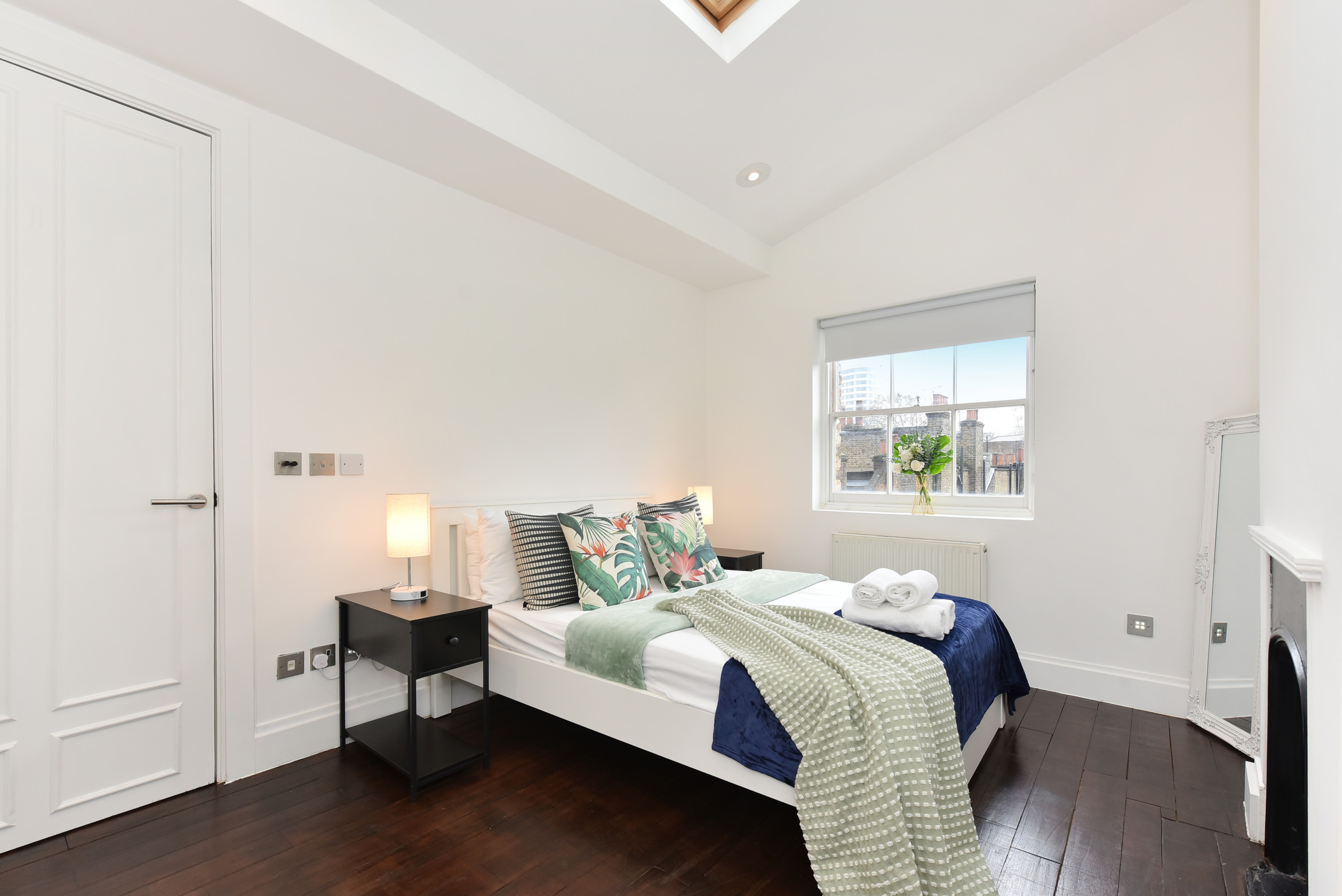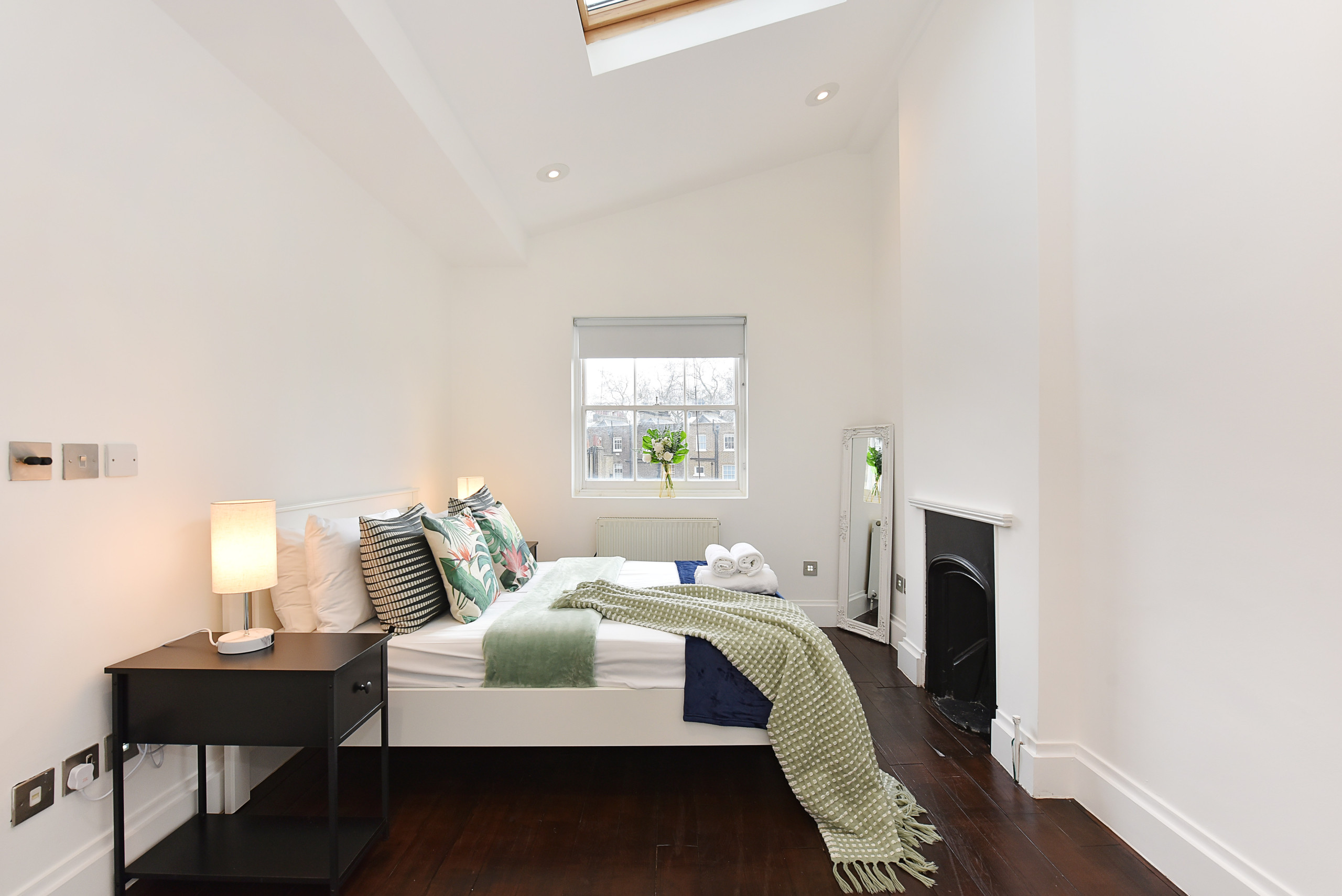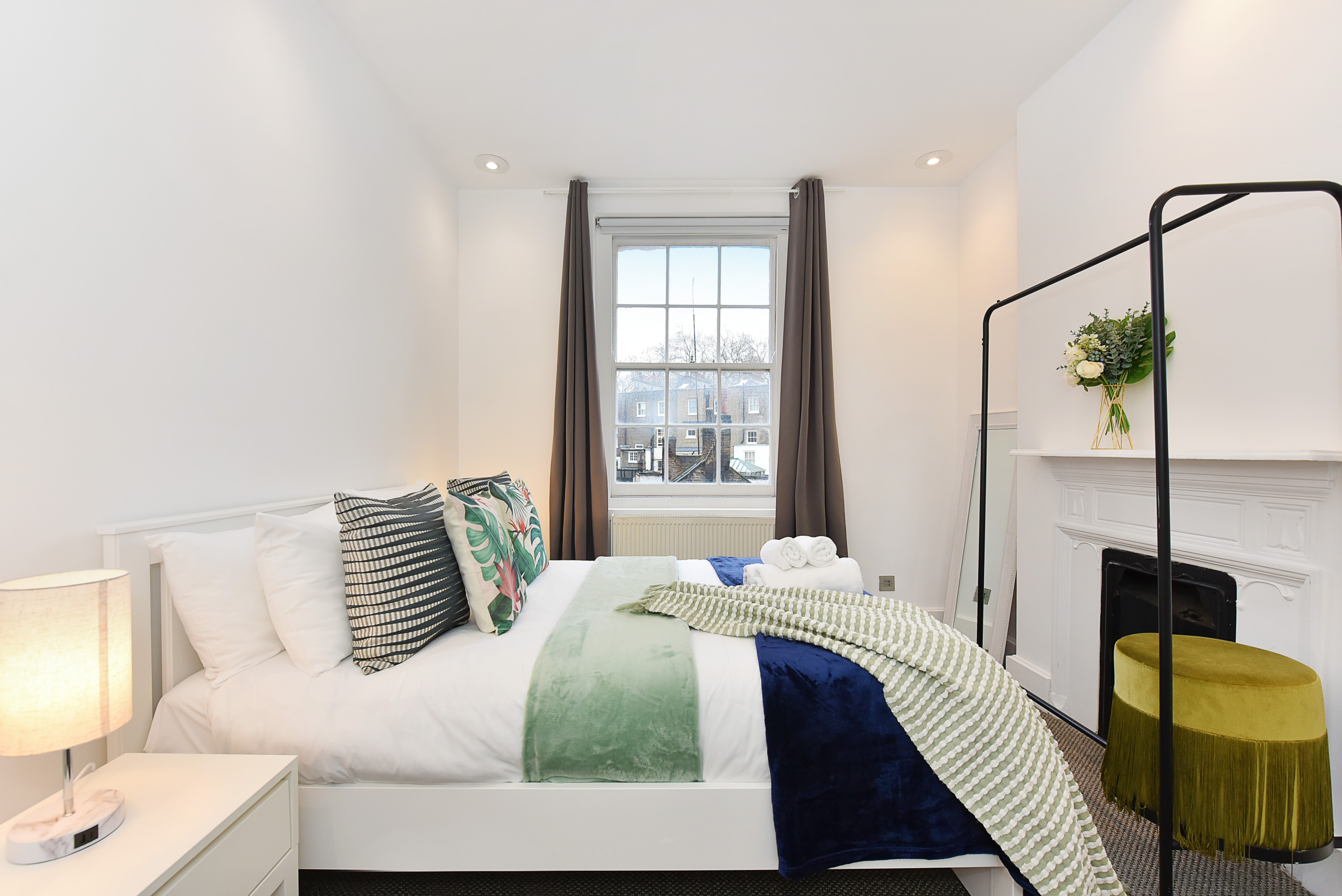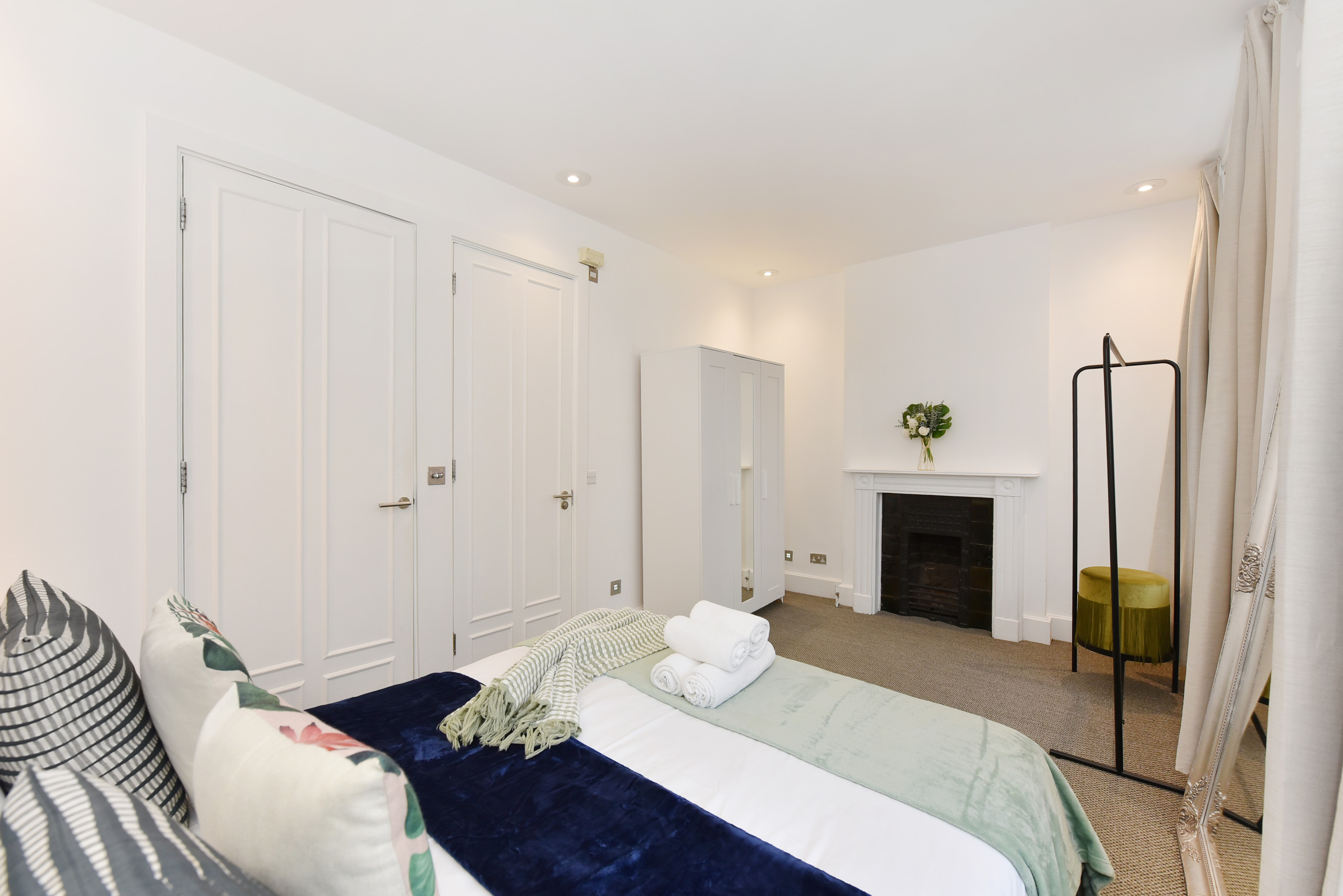 The Second Bedroom offers a UK Double bed (US Full), wardrobe, and another decorative fireplace.
