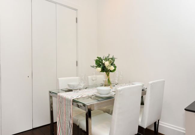 There is also an elegant dining table and chairs for 6, making a perfect space for relaxed evenings after a day in the city.